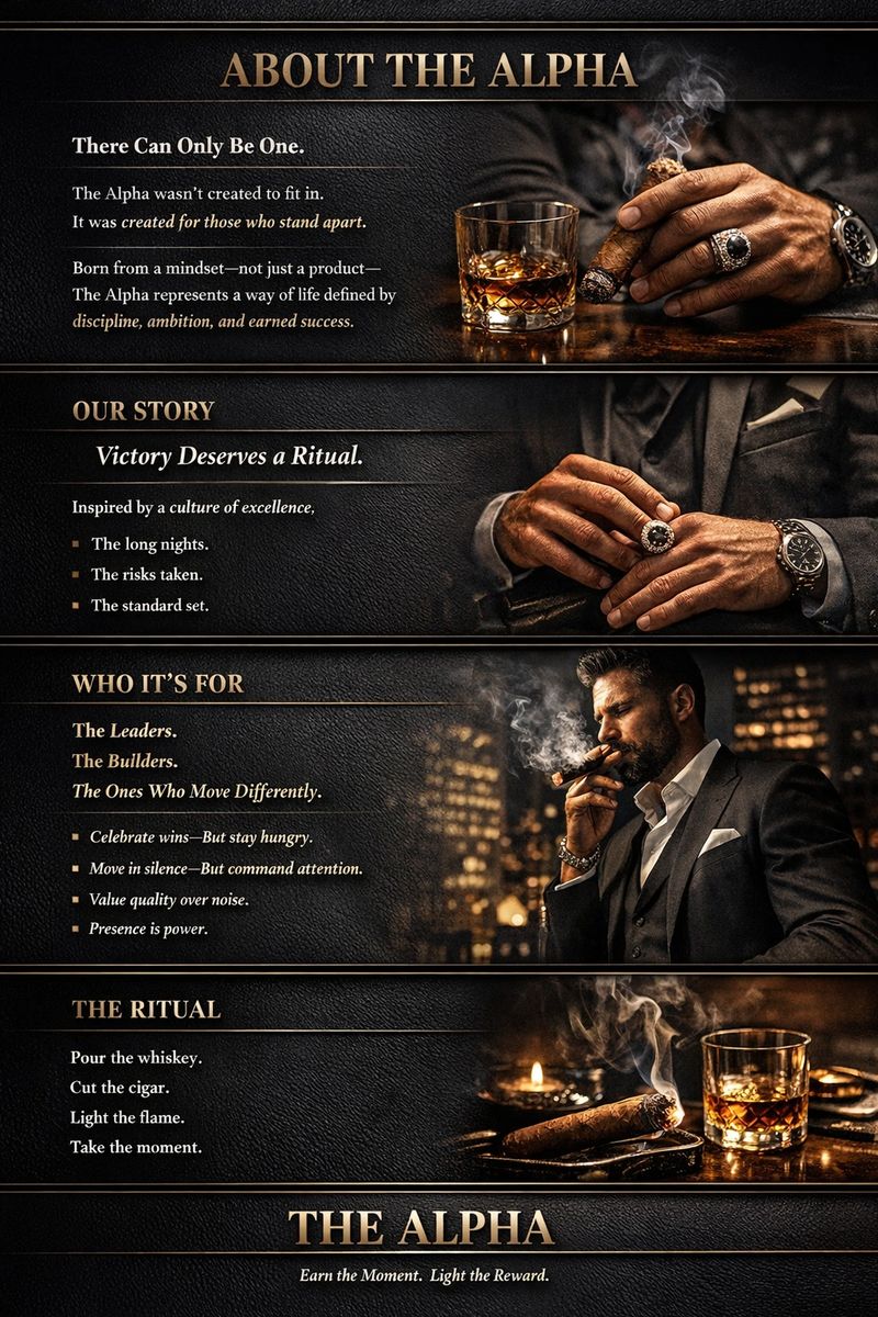 Born from a mindset—not just a product—The Alpha represents a way of life defined by discipline, ambition, and earned success. Every cigar is a symbol of the moments you’ve worked for… the wins that didn’t come easy… and the quiet confidence that comes with knowing you’ve arrived on your own terms.